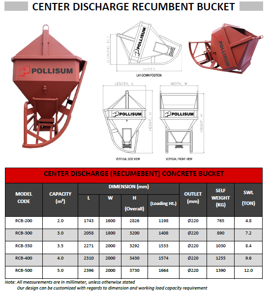 Our Recumbent Bucket is specially designed to hold larger capacity with a relatively lower height to suit various complex terrain at the work sites. A sunny hose can be attached to its valve, which is easily