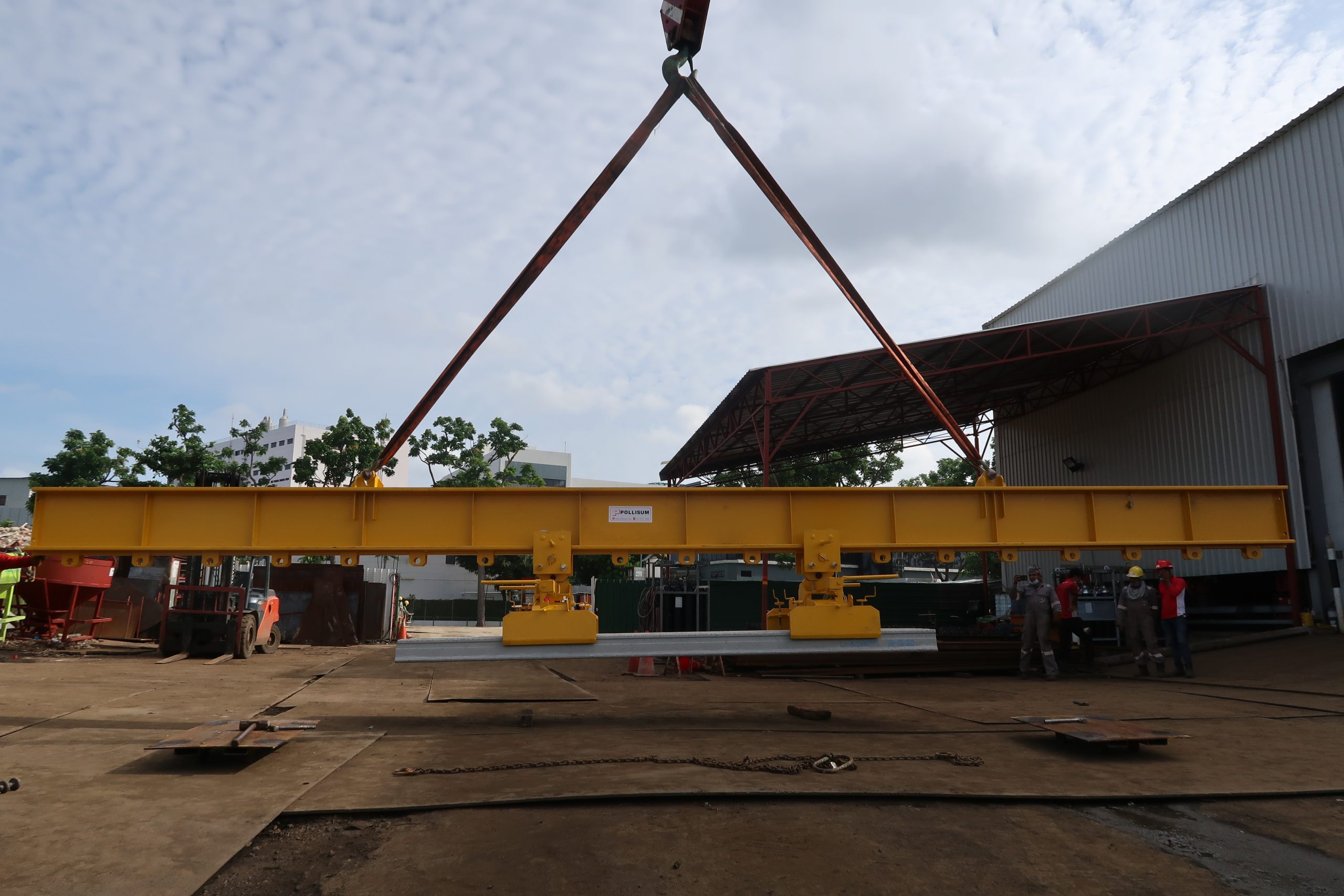 We manufacture Spreader beam and Lifting frames that are custom made to order and according to Professional Engineer (PE) certified drawings, structural calculations and with load test. These lifting frames and beams are mainly used to lift PPVC or PBU which we provide lifting gears (such as wire sling) to match to the tonnage accordingly.
